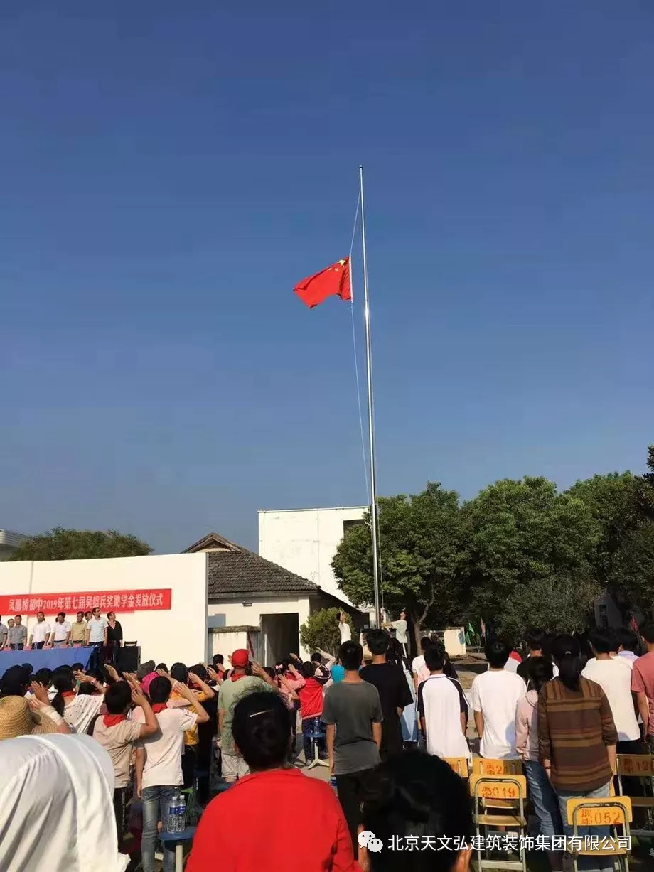 建國七十周年,舉國同慶,獎(jiǎng)學(xué)金發(fā)放儀式開始前,全校師生進(jìn)行了莊嚴(yán)的升國旗儀式。為祖國母親祝福。