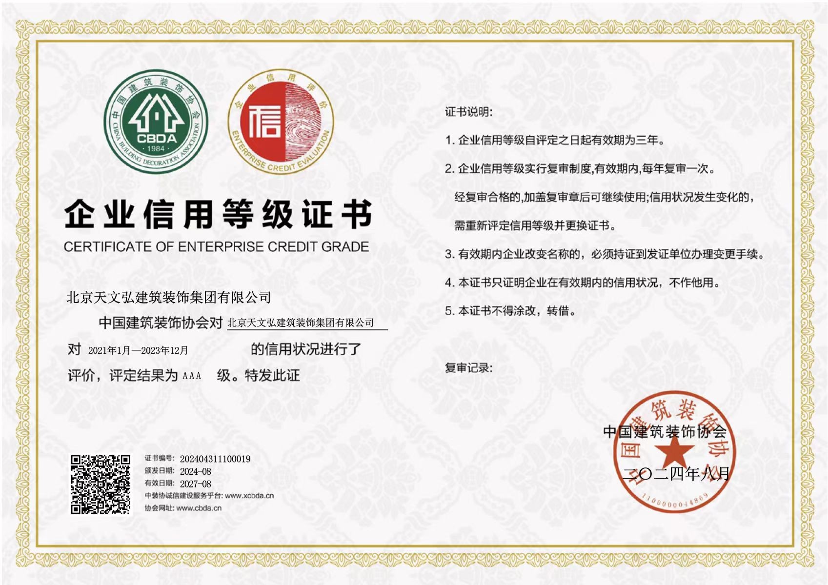 企業(yè)信用等級(jí)證書