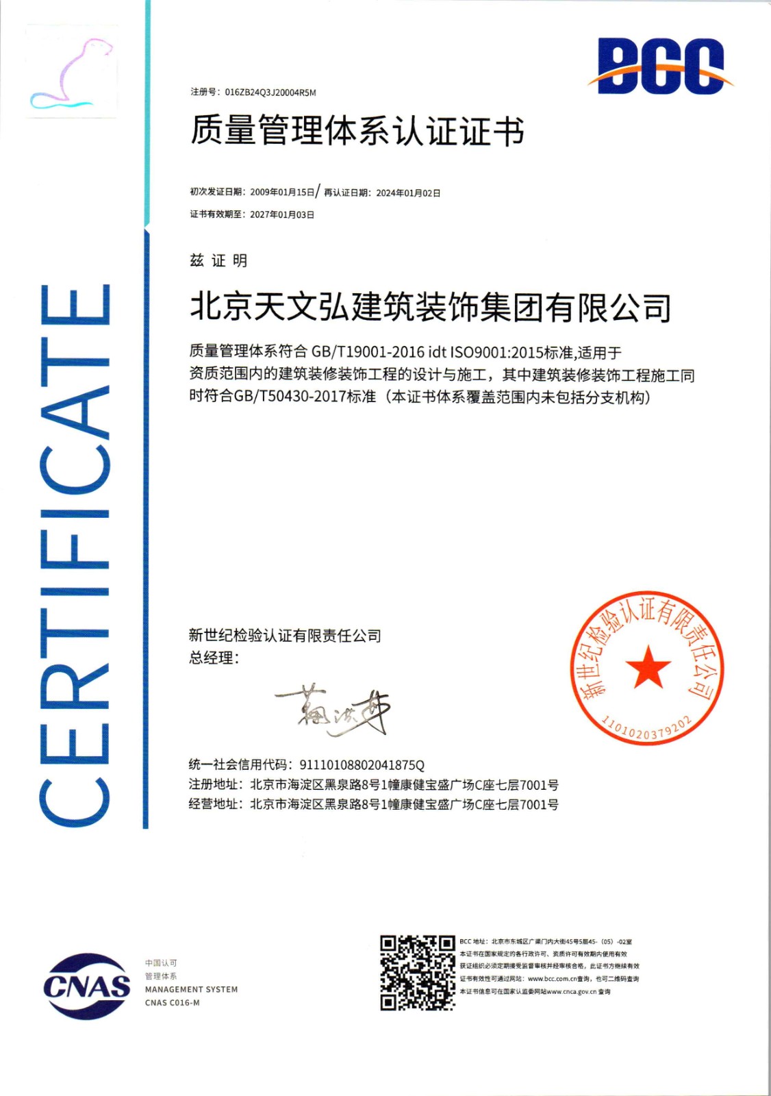 質(zhì)量管理體系認(rèn)證證書