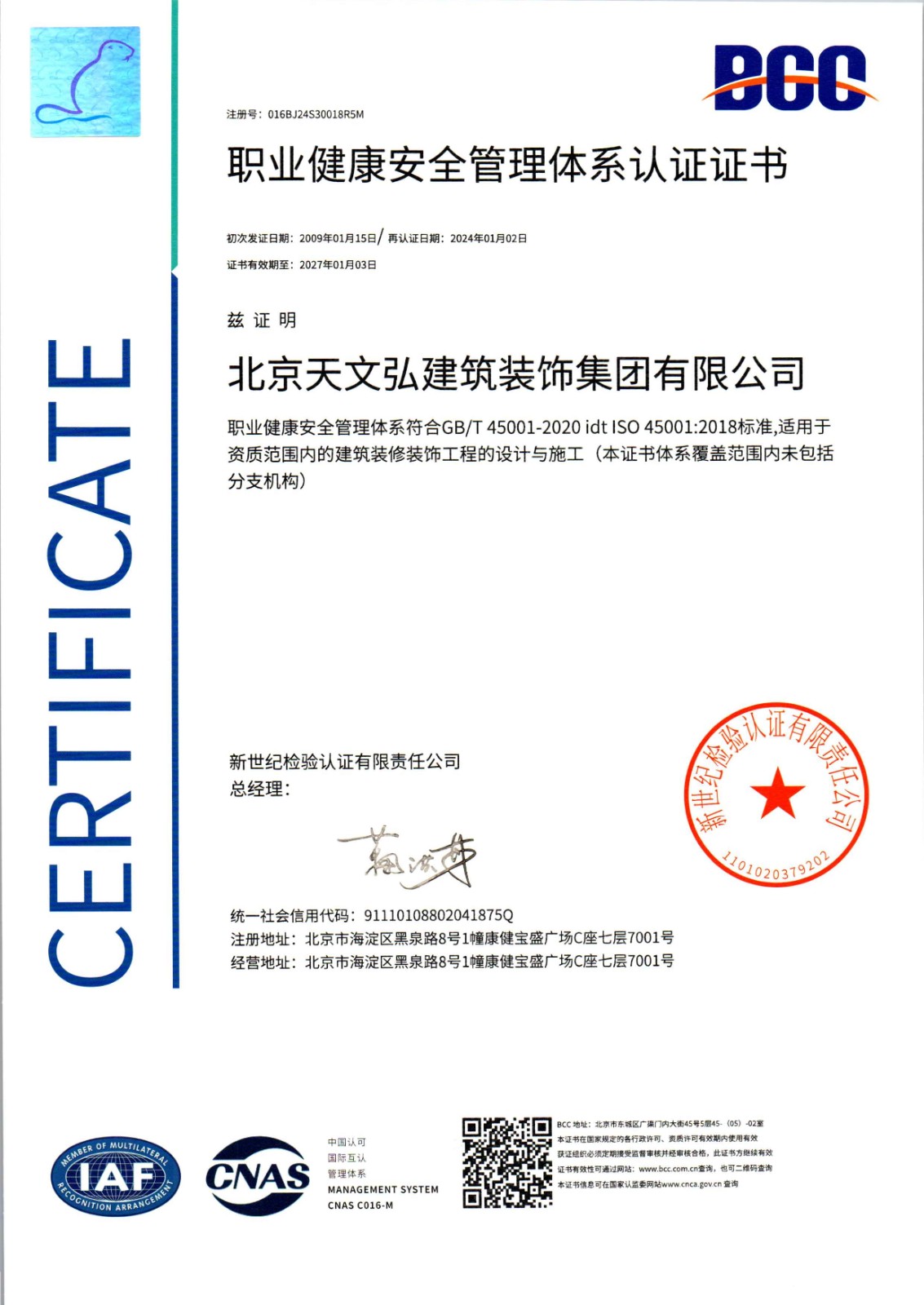 安全管理體系認(rèn)證證書